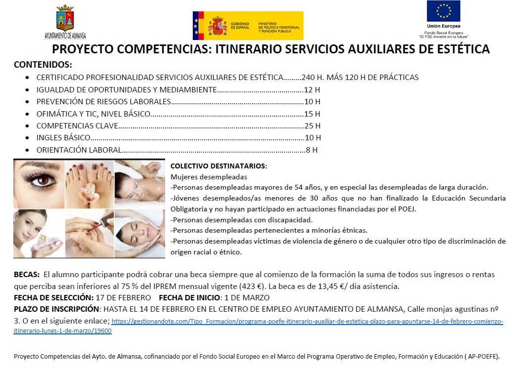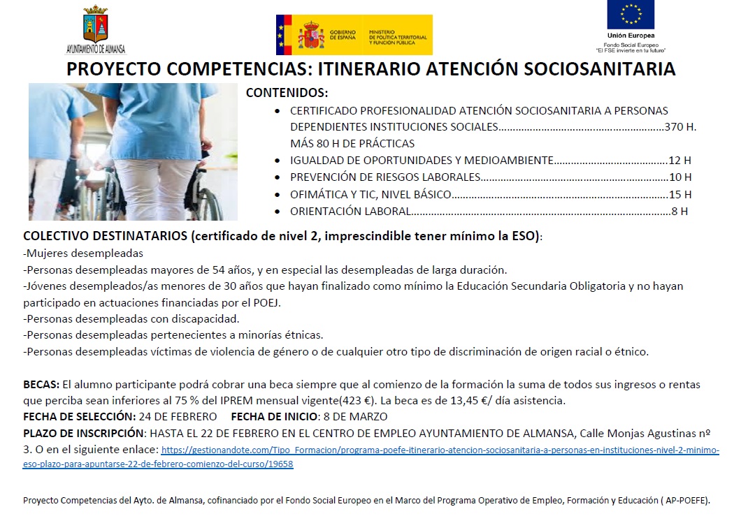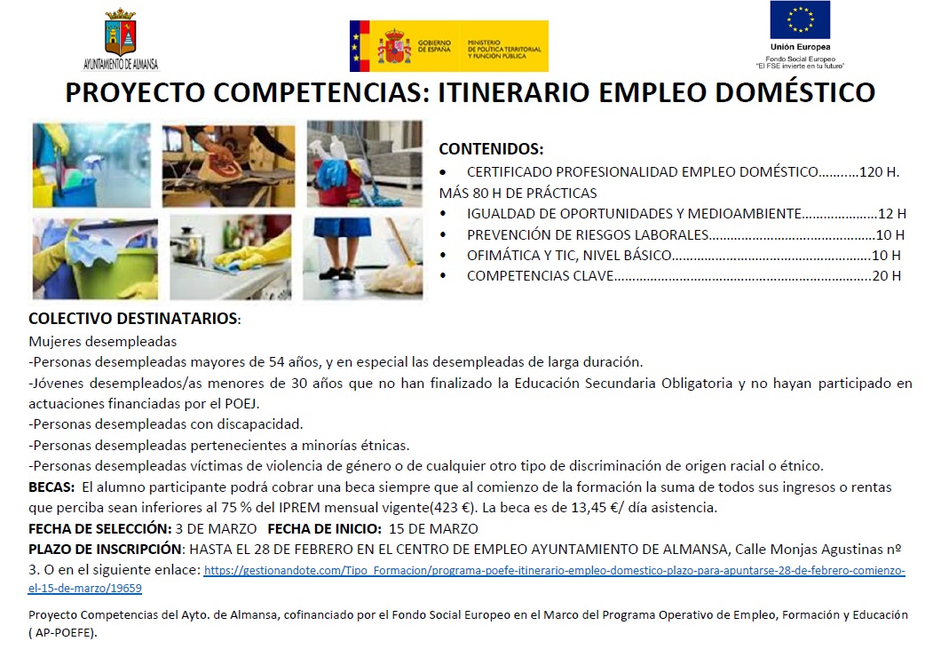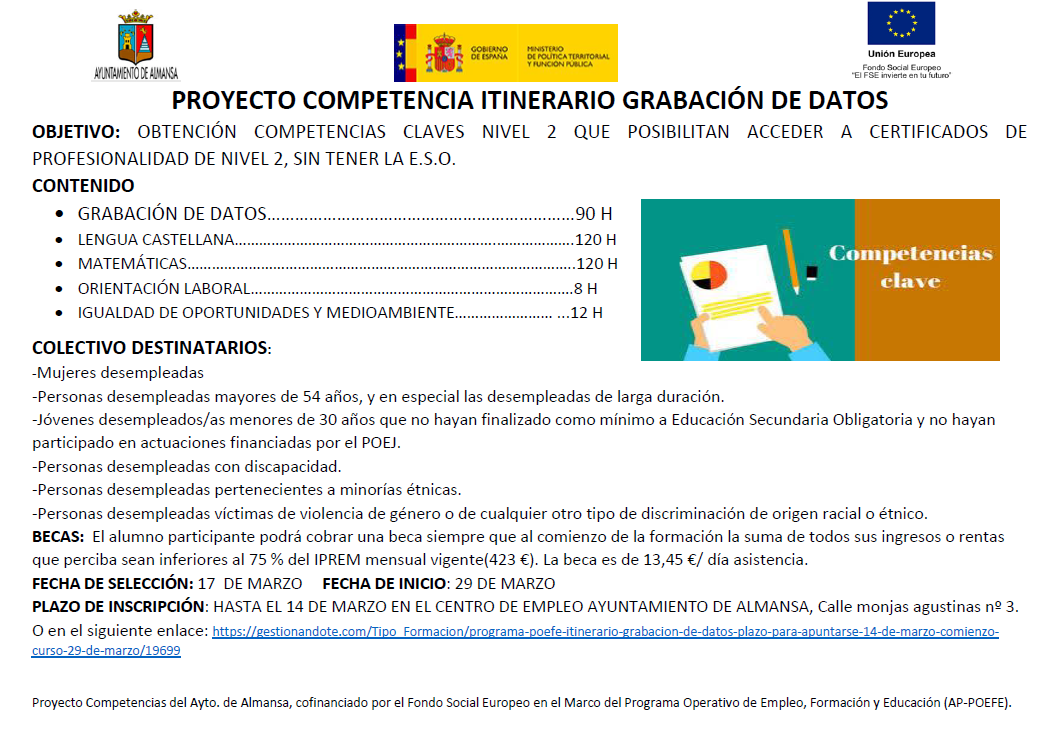 Proyecto Competencias del Ayto. de Almansa, cofinanciado por el Fondo Social Europeo en el Marco del Programa Operativo de Empleo, Formación y Educación ( AP-POEFE).