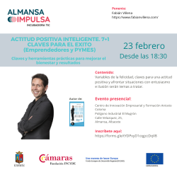 Evento gratuito, aforo limitado y obligatoria inscripción.